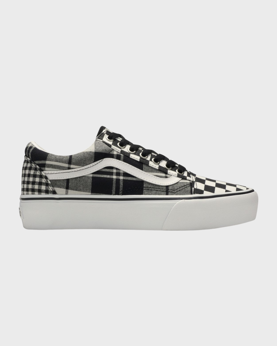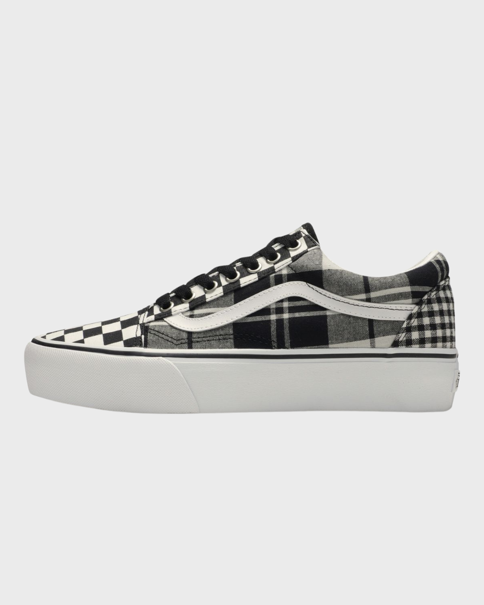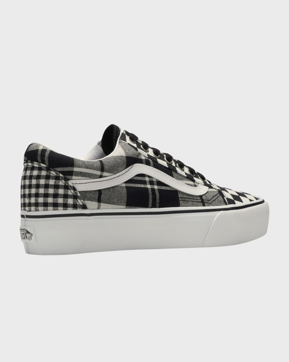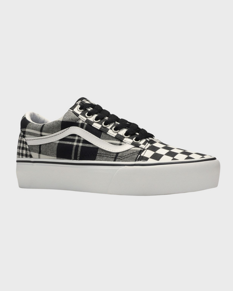 "The Checkerboard Old Skool Platform combines the Vans classic sidestripe skate shoe with sturdy canvas and suede uppers, the iconic Vans Checkerboard print, padded collars for support and flexibility, and platform signature rubber waffle outsoles.