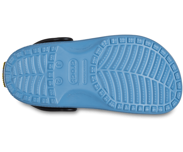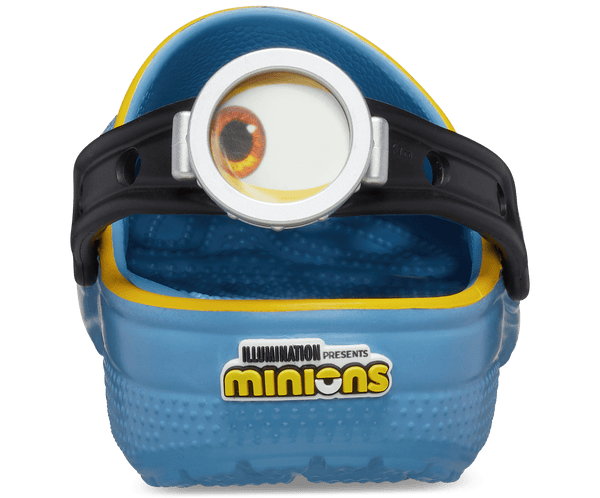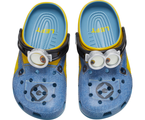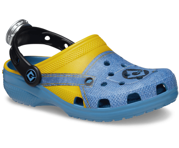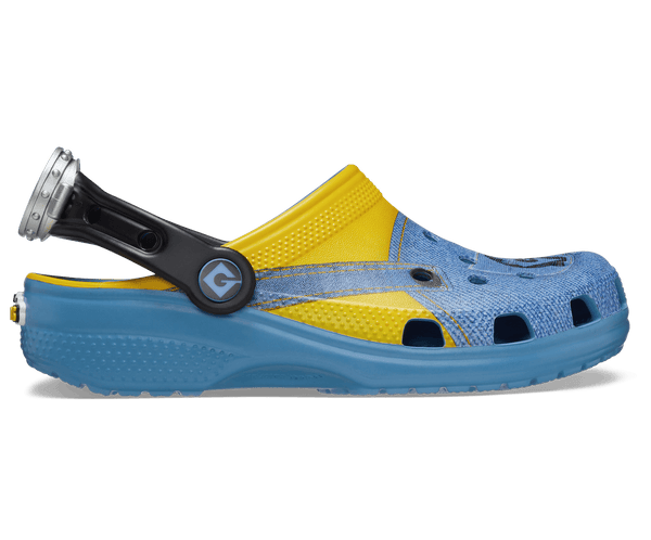 Bello! The Minions Classic Clog is designed to look like your favorite yellow character, complete with printed denim overalls. The ankle strap features an eyeball with goggles, to top off the essential Minions look. Minions logos adorn the rivet and heel, while the entire design is supported by the iconic comfort of Crocs.
