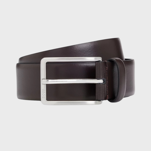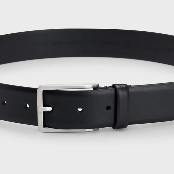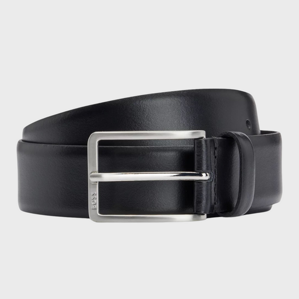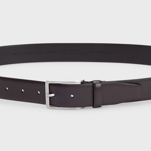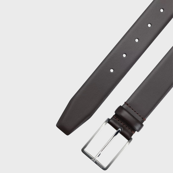 A versatile yet refined 3.5cm belt by BOSS made in Italy from smooth leather with a polished silver-tone pin buckle. This Dressletic style blends innovative performance technology with a tailored fit. Its elastic band near the engraved logo buckle ensures comfort without sacrificing support, ideal for work or leisure. We continuously look for more responsible ways to produce and finish our products. A minimum of 60% of the leather used to make this product has been sourced from certified tanneries.