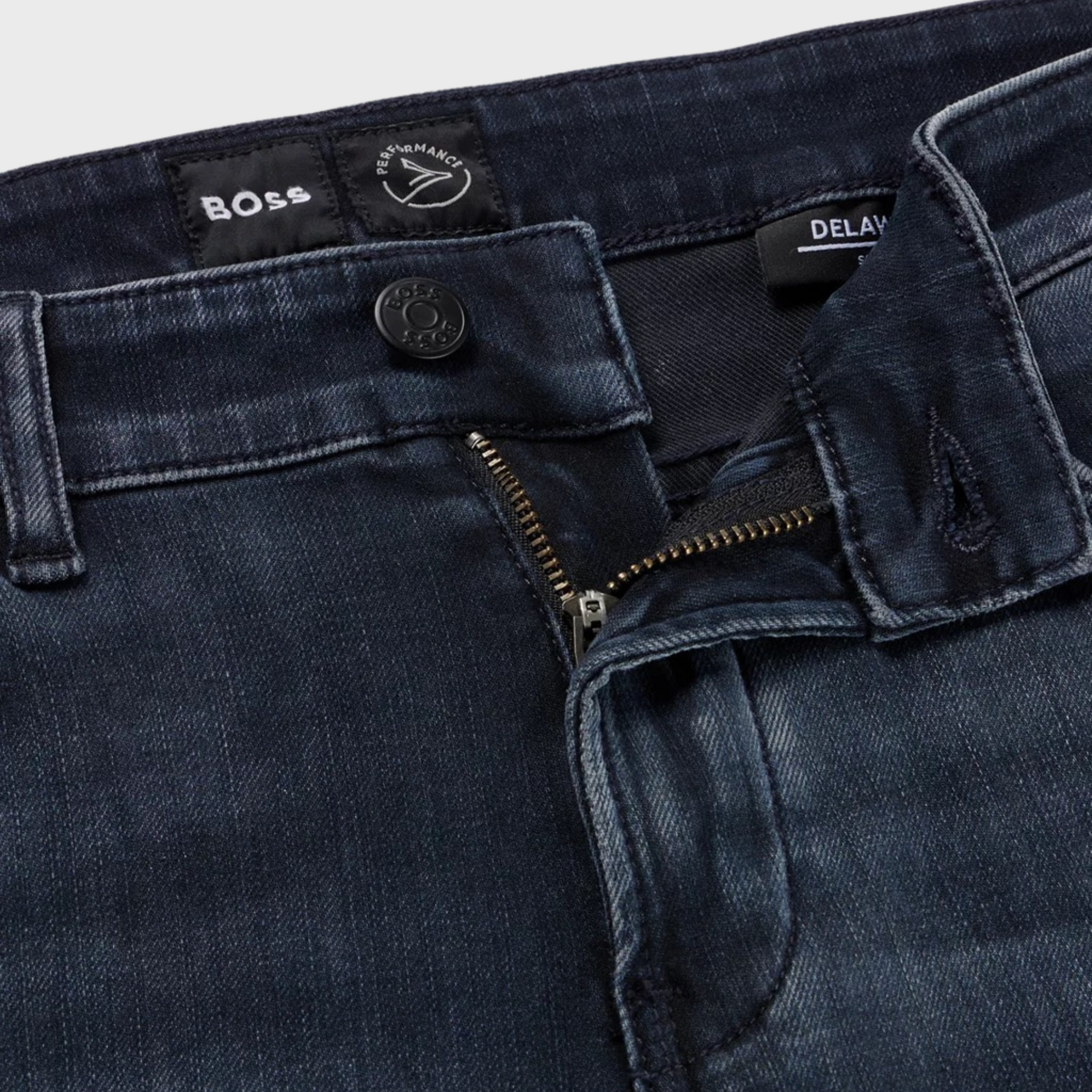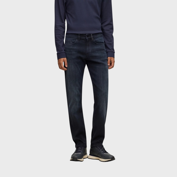 Regular-rise jeans cut to a slim fit in blue knitted denim by BOSS Menswear.   This product is made with cotton.  Slim fitRegular riseZip closurePockets bottom front: Side pocketsStraight legPockets bottom back: Patch pocketStandard length
