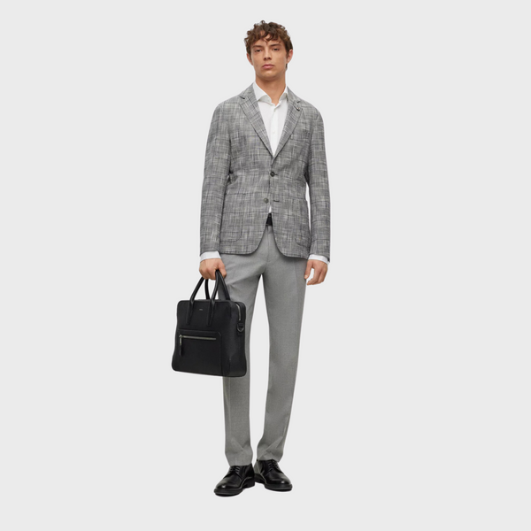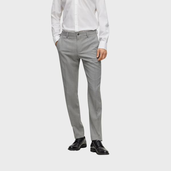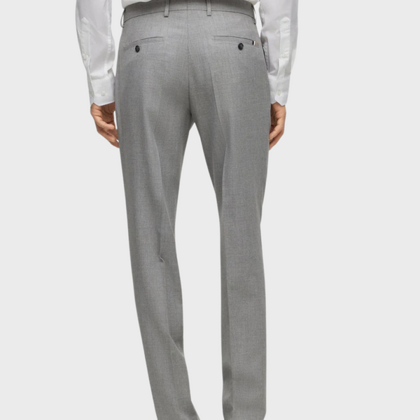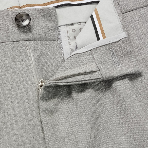 Flat-front pants by BOSS Menswear, cut to a slim fit in melange stretch fabric blended with wool.Slim fitButton and zip closureFlat frontPockets bottom front: French pocketPockets bottom back: Welt pocket with buttonsPartially lined