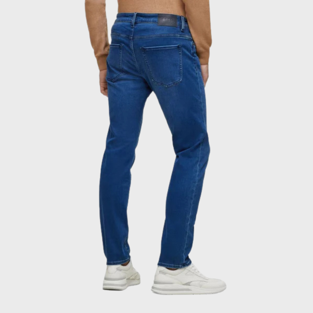 | The BOSS Delaware3-1 jeans are the perfect option for the denim connoisseur. Engineered using stretch denim and cut to a slim leg, the blue jeans offer a modern silhouette and exceptional freedom of movement. Featuring a zip fly, classic five pocket design and branded waistband tab, whilst the versatile blue wash creates a laid-back finish. |