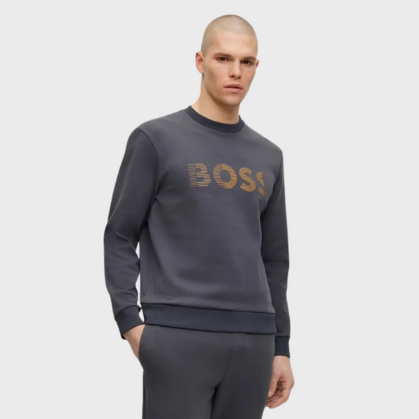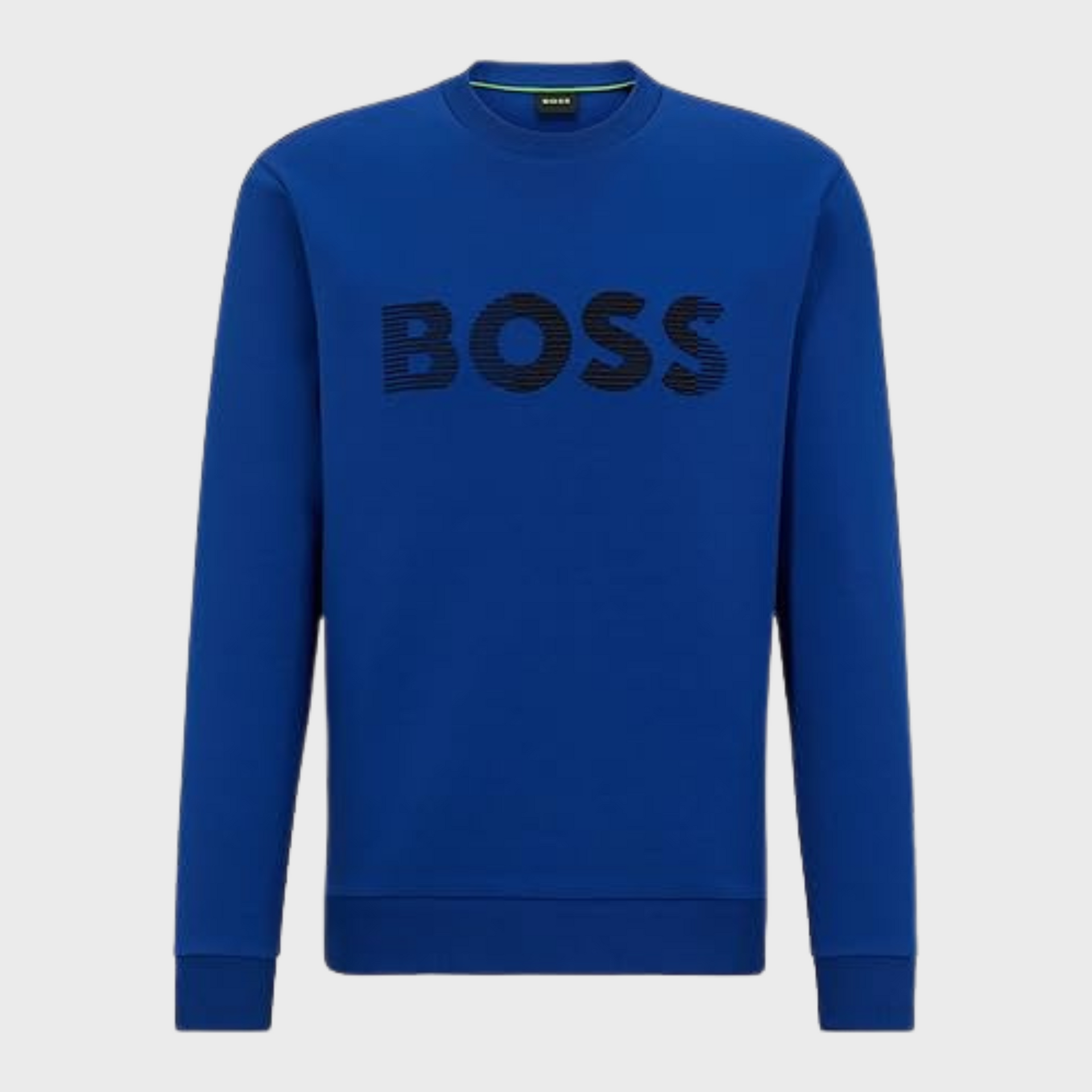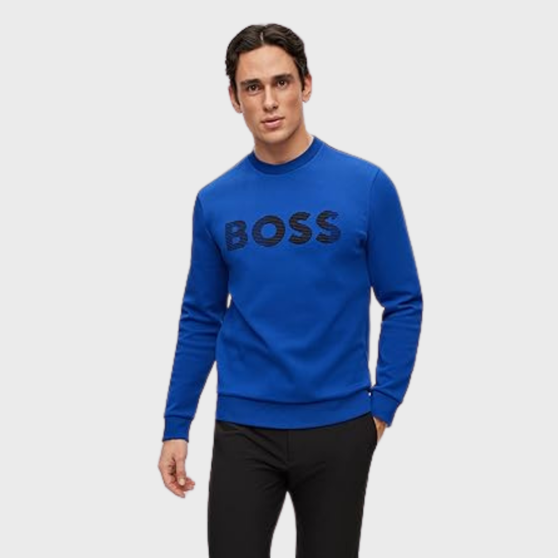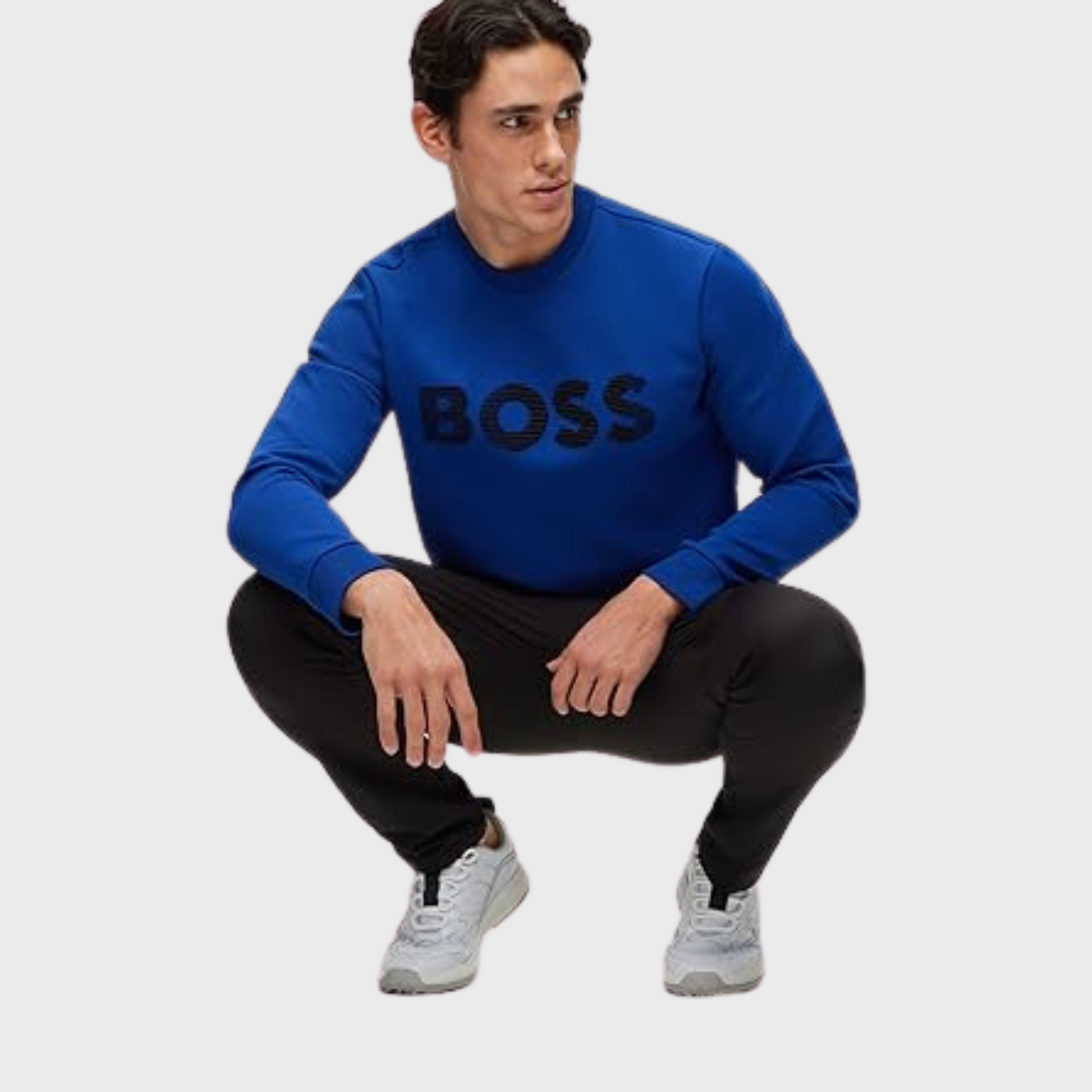 | This regular-fit sweatshirt combines comfort and style with its stretch cotton-blend fabric, ribbed crew neck, and trims. Finished with a bold 3D embroidered BOSS logo at the chest for a statement look. |