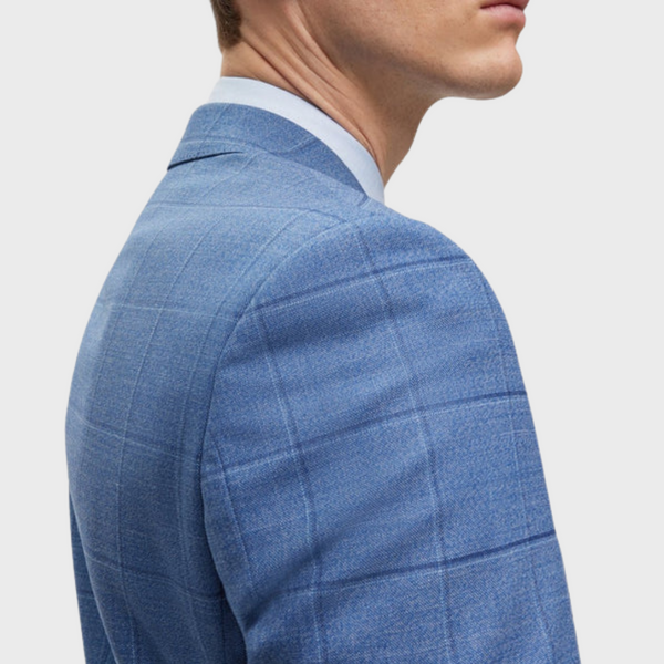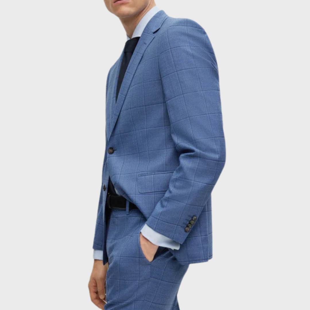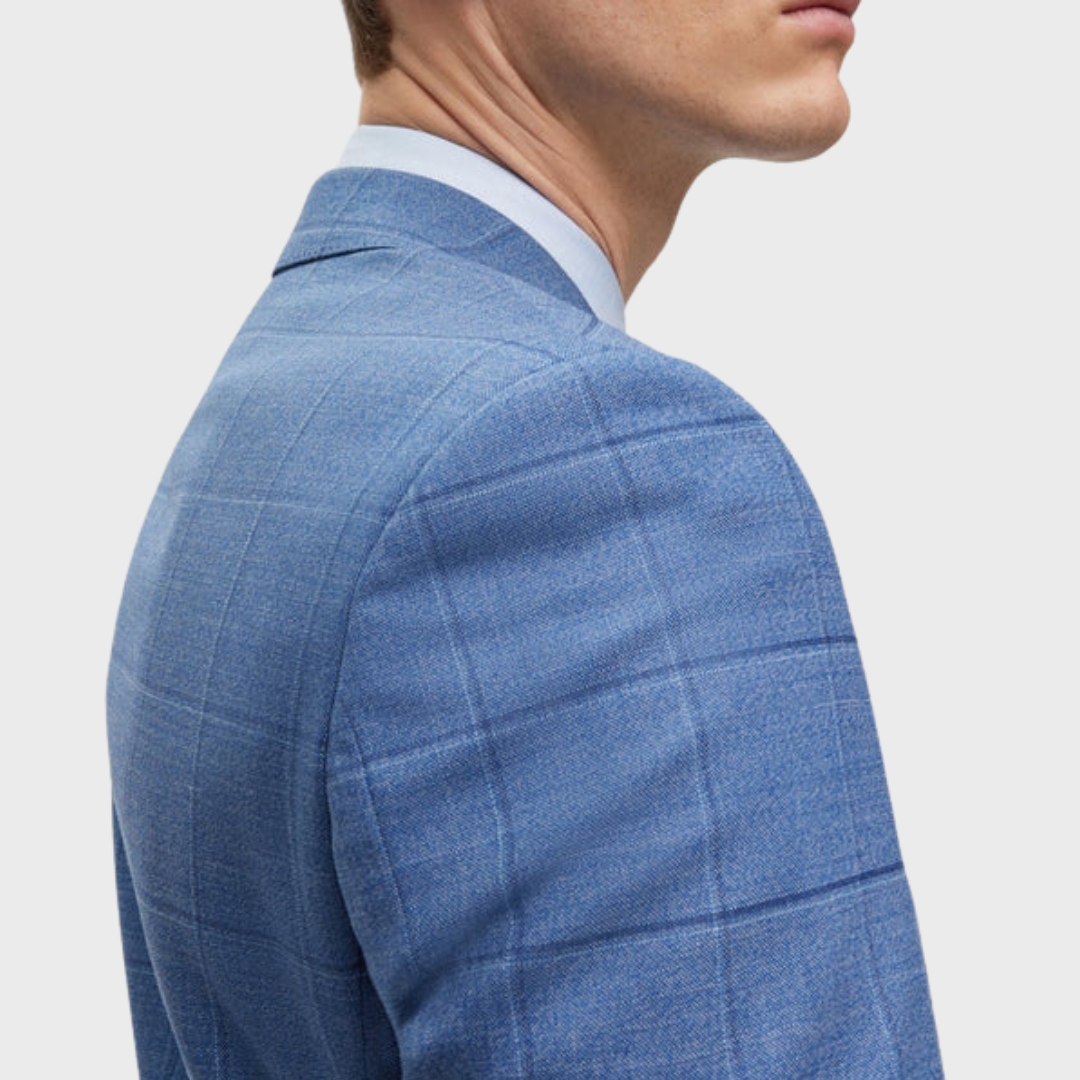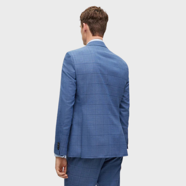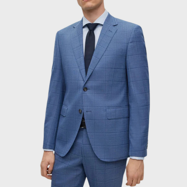 | This BOSS Men's 2-button jacket, model 'Jeckson', is crafted from a new wool blend with added stretch for comfort. Featuring an all-over pattern, lapel collar, button closure, breast pocket, and flap pockets, it offers a sophisticated regular fit for any occasion. |