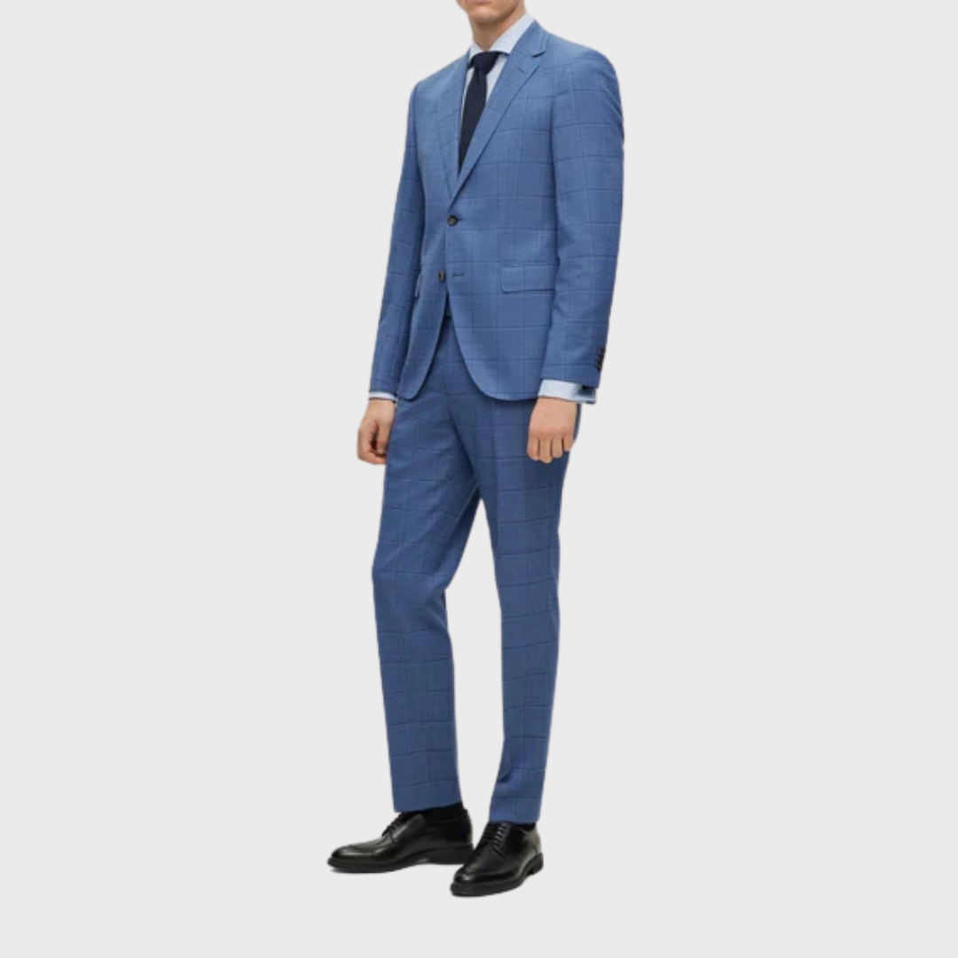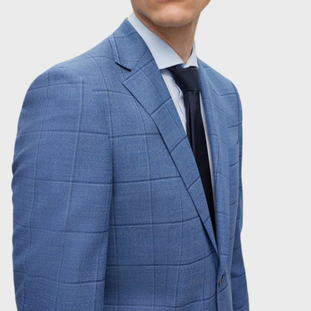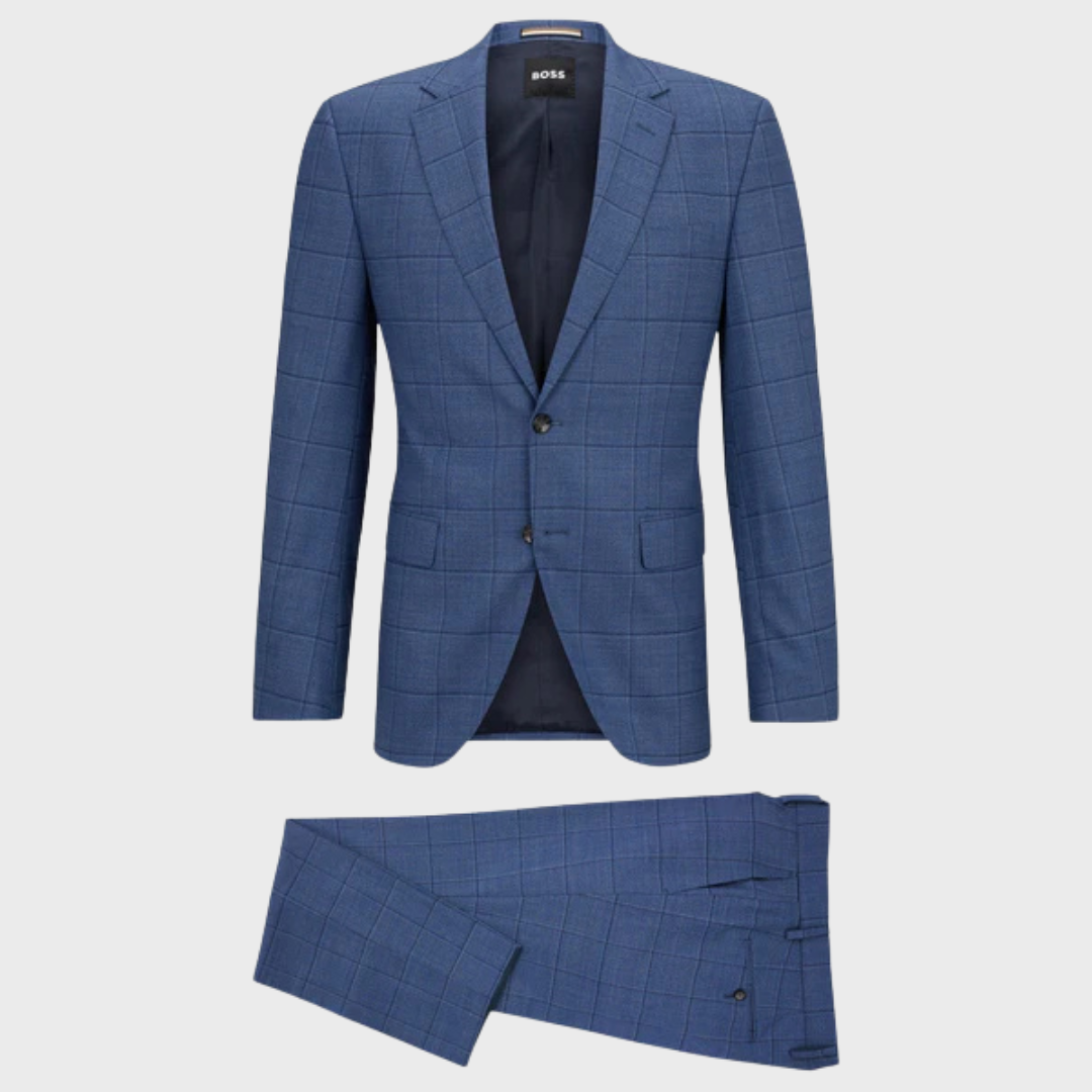 | This BOSS Men's 2-button jacket, model 'Jeckson', is crafted from a new wool blend with added stretch for comfort. Featuring an all-over pattern, lapel collar, button closure, breast pocket, and flap pockets, it offers a sophisticated regular fit for any occasion. |