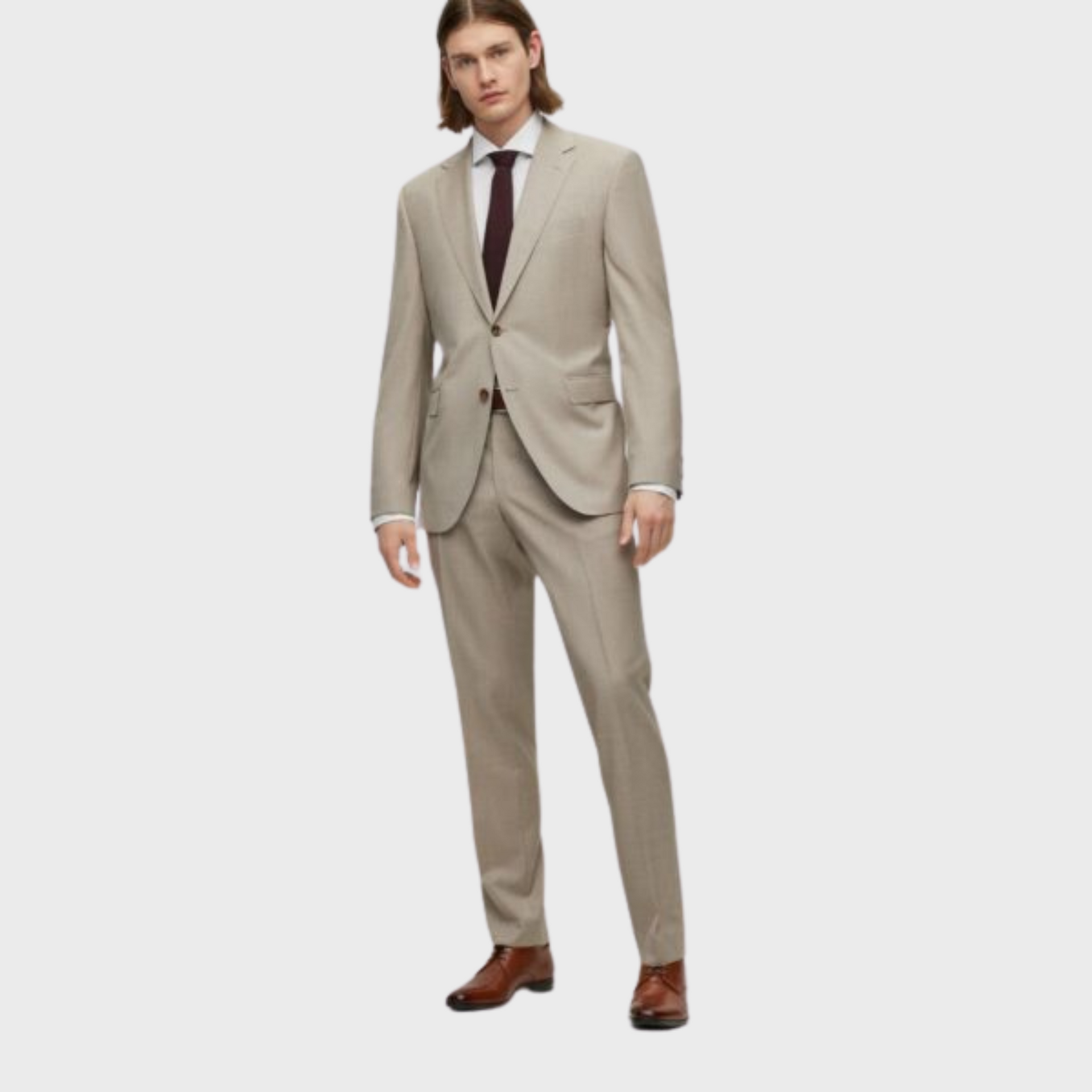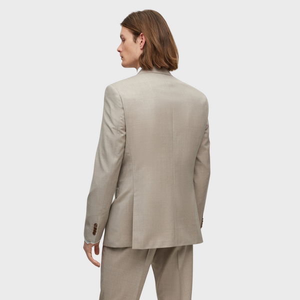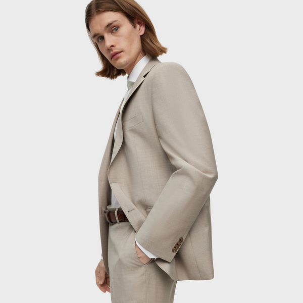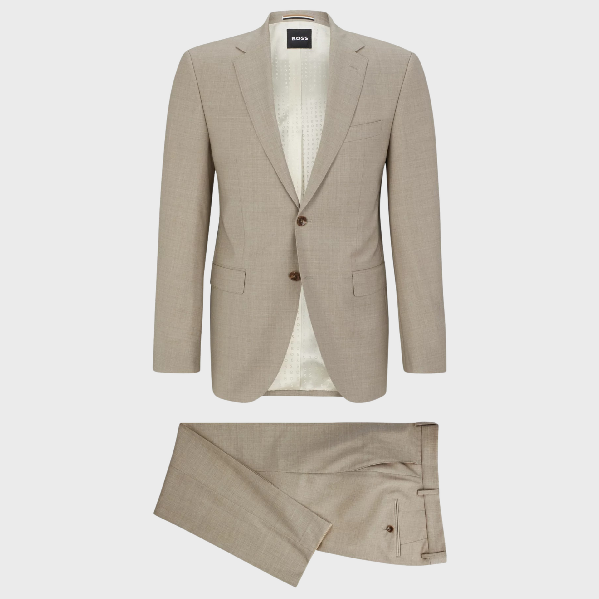 | Offered in a straight fit for a strong silhouette with room to move, this two-piece suit is designed in virgin wool with a solid weave. The interior benefits from signature lining. Regular fit Notched lapels Number of buttons: 2 Welt chest pockets Pockets top: Flap pockets Inside welt pockets Button cuffs Side vent Fully lined Standard length Fit back length |