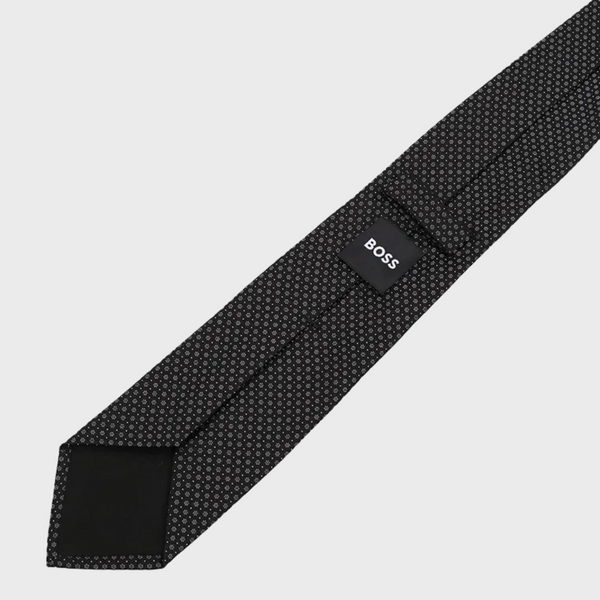 | Elevate your business attire with the BOSS patterned tie. Lovingly crafted in premium silk, the tie showcases a classic shape for a neat aesthetic. Featuring a repeat jacquard pattern throughout, the tie boats sophisticated style. |