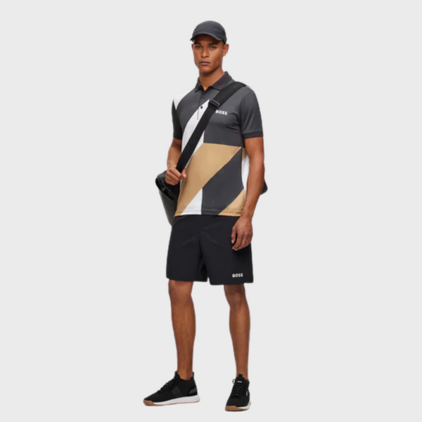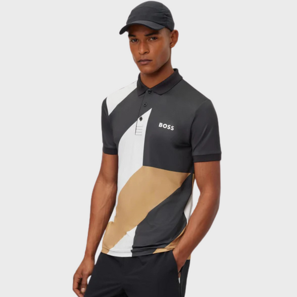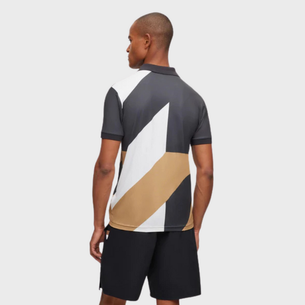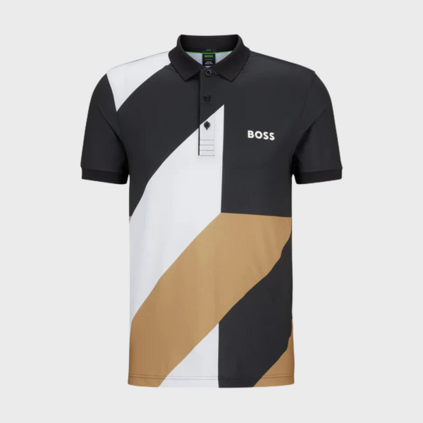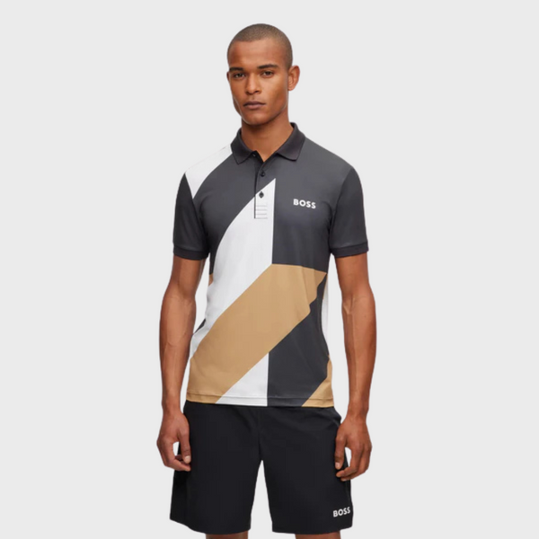 | A slim-fit polo shirt in stretch jersey with a printed logo and oversize block pattern by BOSS Menswear. Part of the dynamic BOSS x Matteo Berrettini capsule collection, co-created by the Italian professional tennis player. Slim fit Short sleeves Standard length |
