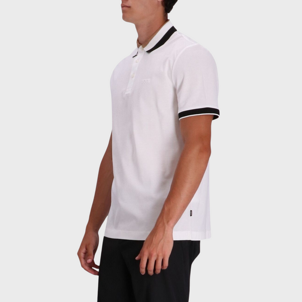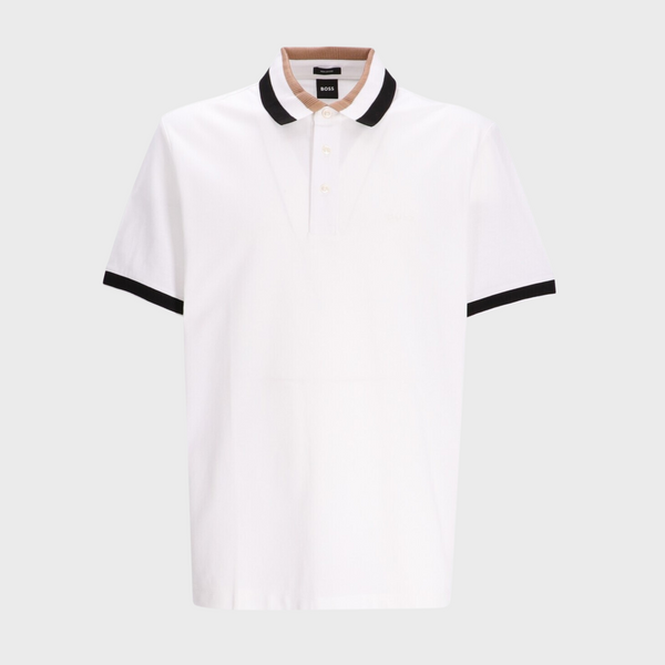 | Made from a soft and breathable cotton pique fabric, this polo shirt is comfortable to wear all day long. It features a classic polo collar with a signature stripe, as well as an embroidered BOSS logo at the left chest. |