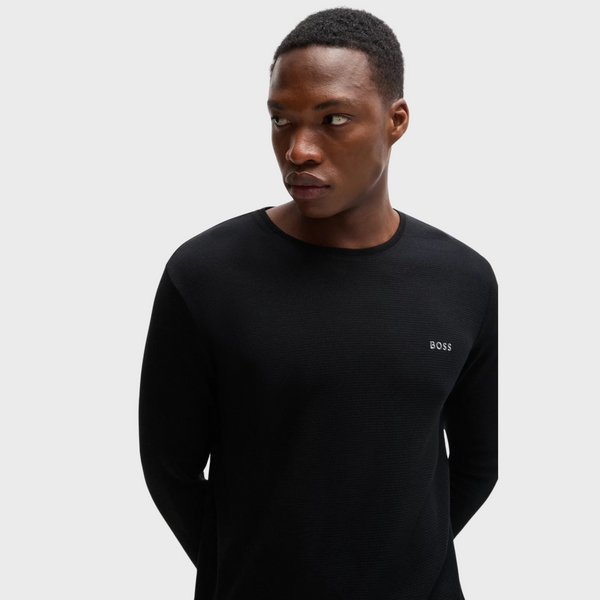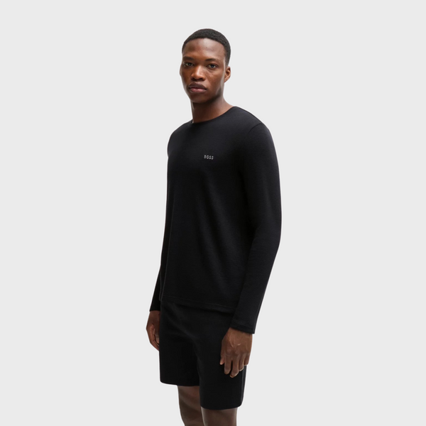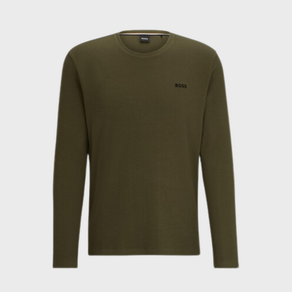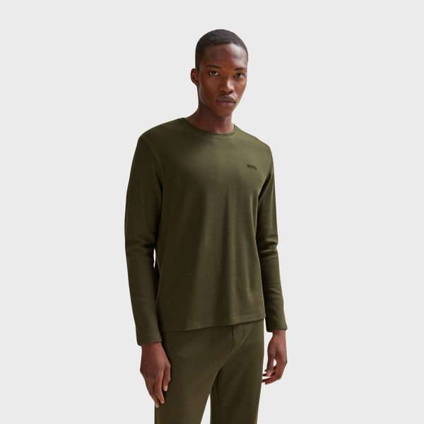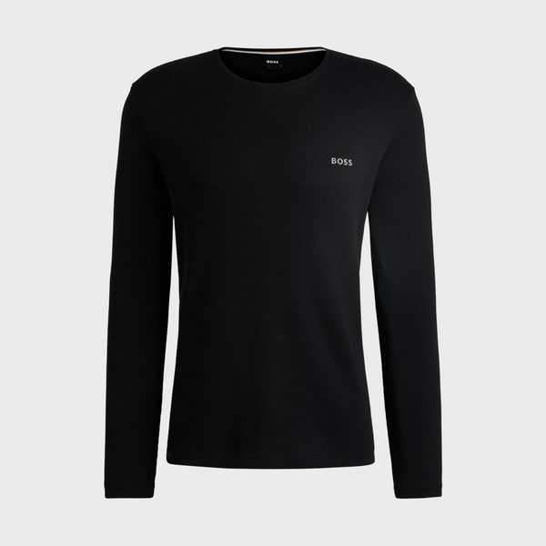 | A signature pyjama T-shirt with long sleeves by BOSS. This regular-fit top is crafted in waffle fabric with an embroidered logo at the left chest. This product is partly made with organic cotton. Our organic standards do not allow the use of synthetic fertilisers, pesticides or genetically modified seeds. Regular fit Crew neck |