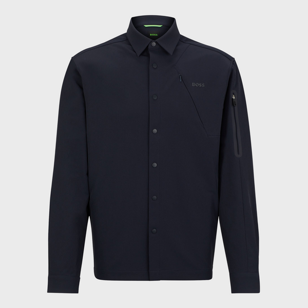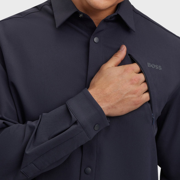Product Description: This relaxed-fit shirt features a smart Kent collar, two zip-fastened pockets, and a full snap-button front closure for a modern, versatile style. Finished with subtle BOSS branding on the left chest, it offers...