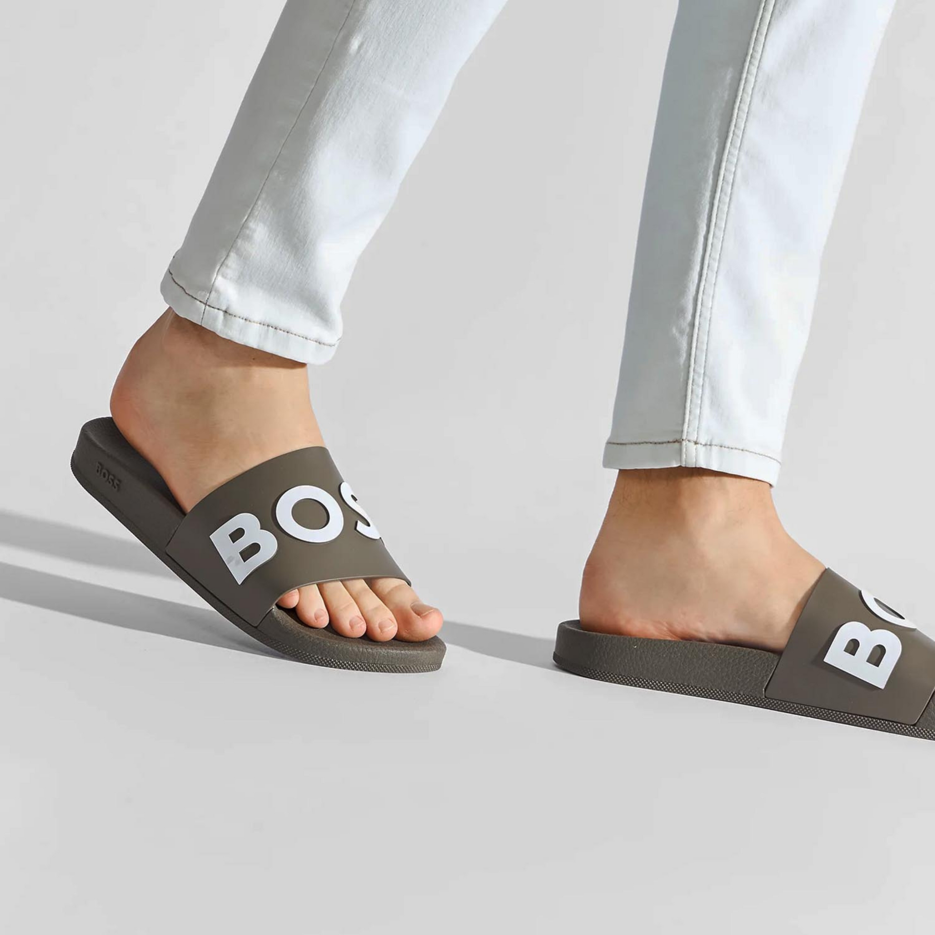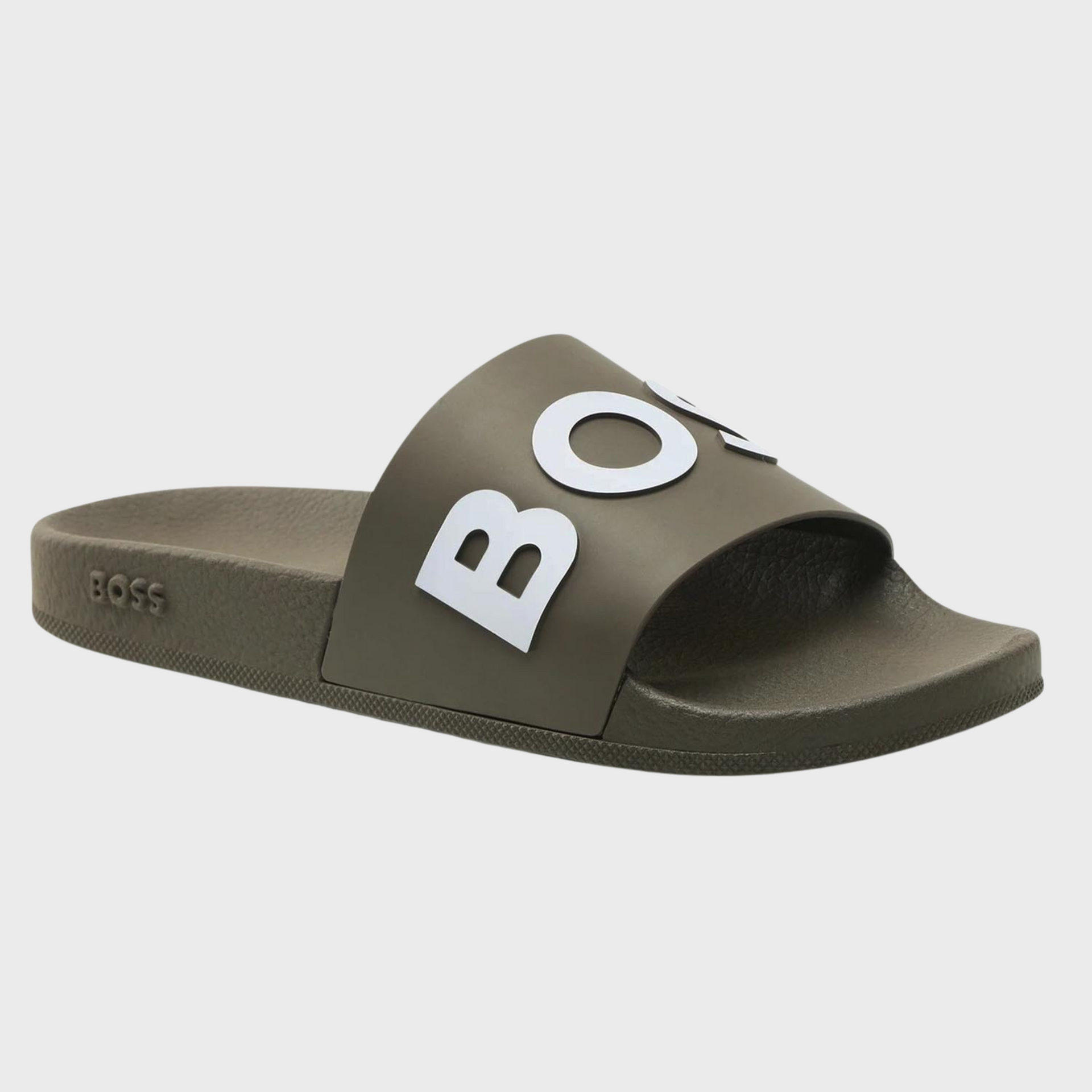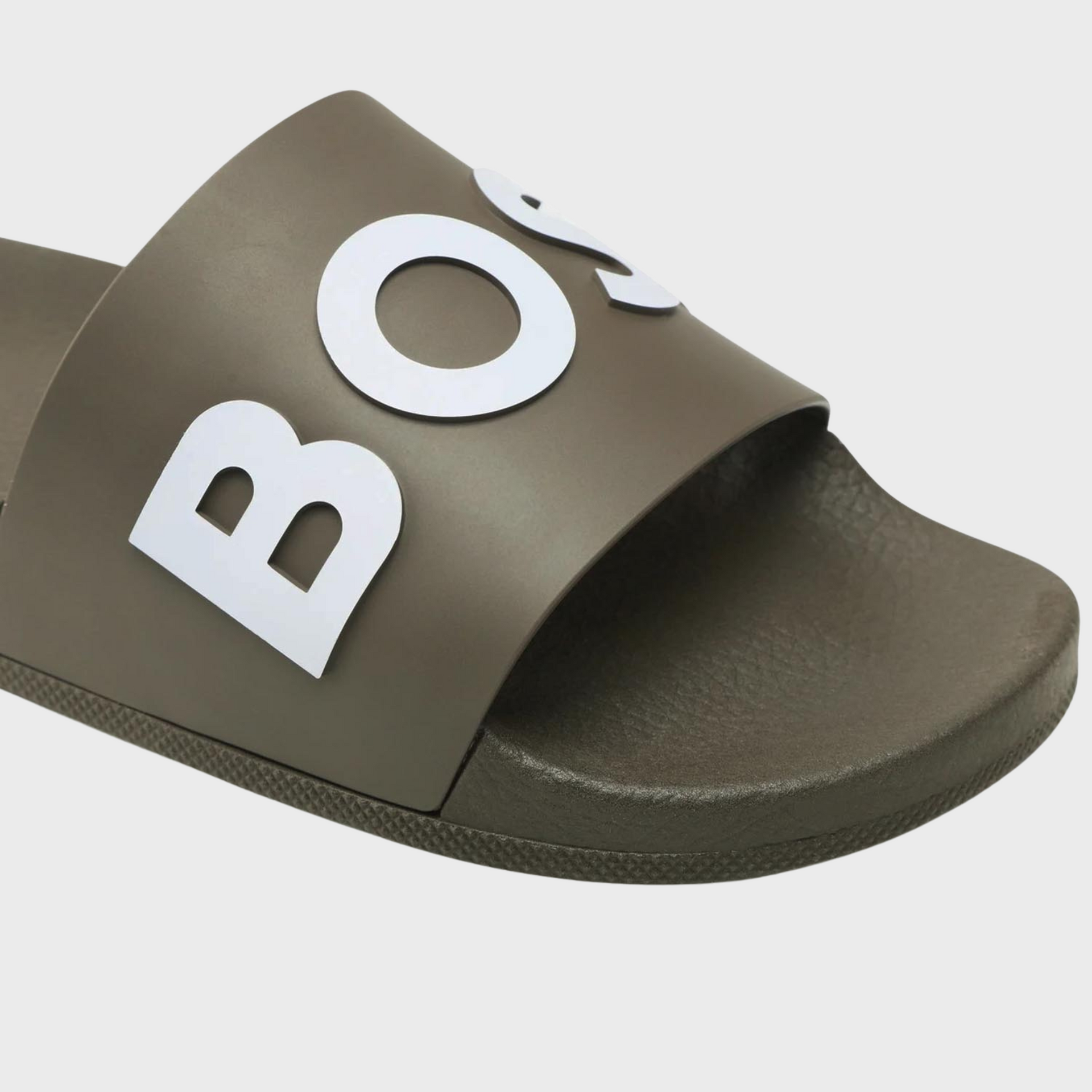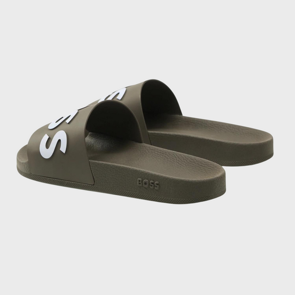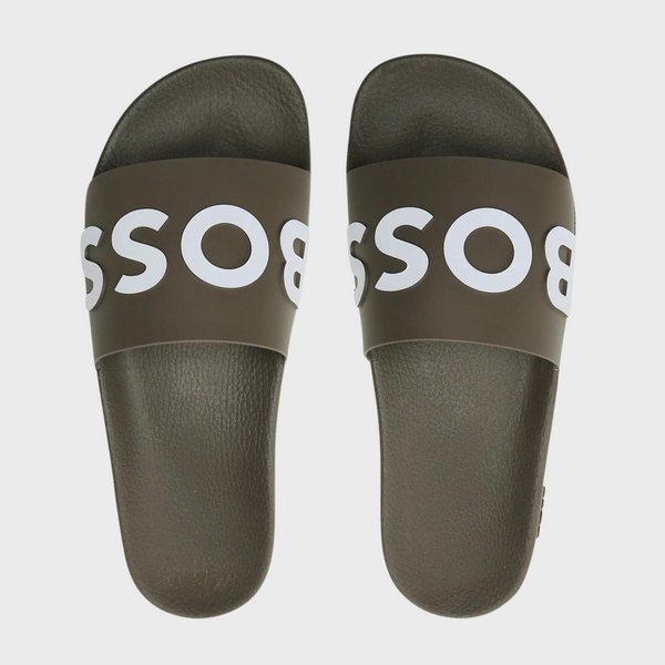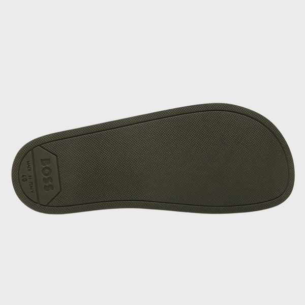 | Summery slides by BOSS. Expertly crafted in Italy with a flexible sole, these slip-on slides are topped with a wide strap carrying a debossed logo in contrast. The side is detailed with further BOSS branding. Fastening top: Slip-on Unlined |