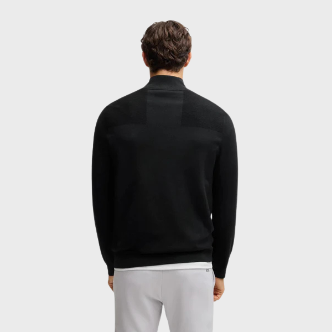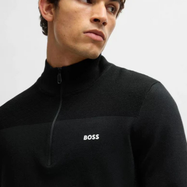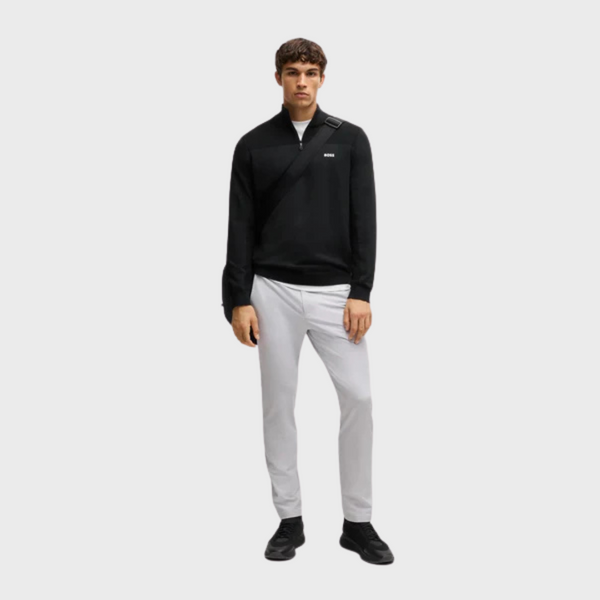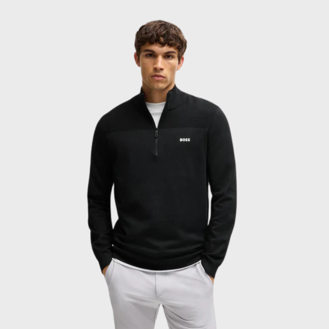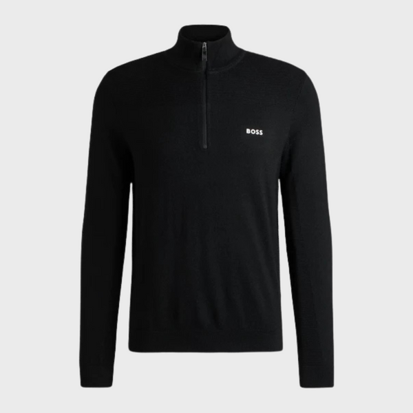 | A regular-fit zip-neck sweater with a logo by BOSS Menswear, designed in thermo-regulating and moisture-managing fabric blended with wool. Regular fit Zip neck Long sleeves Ribbed cuffs Standard length |