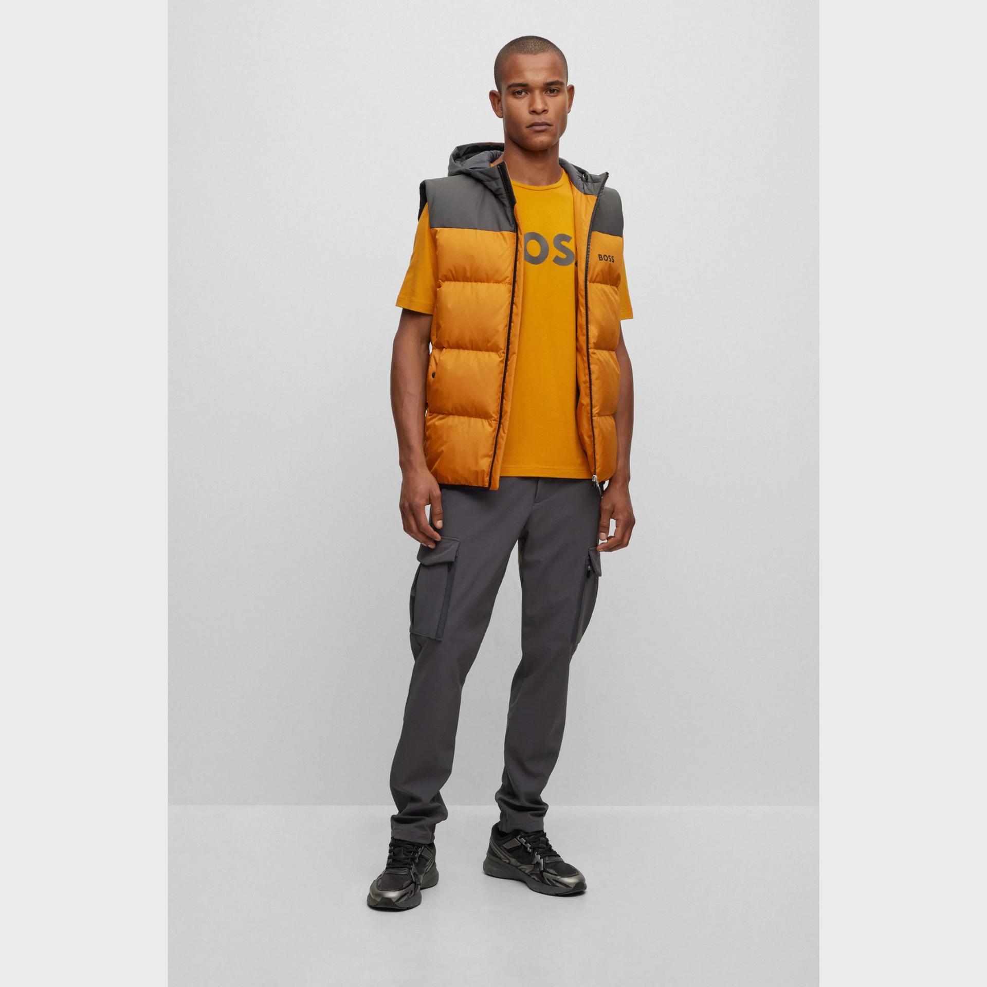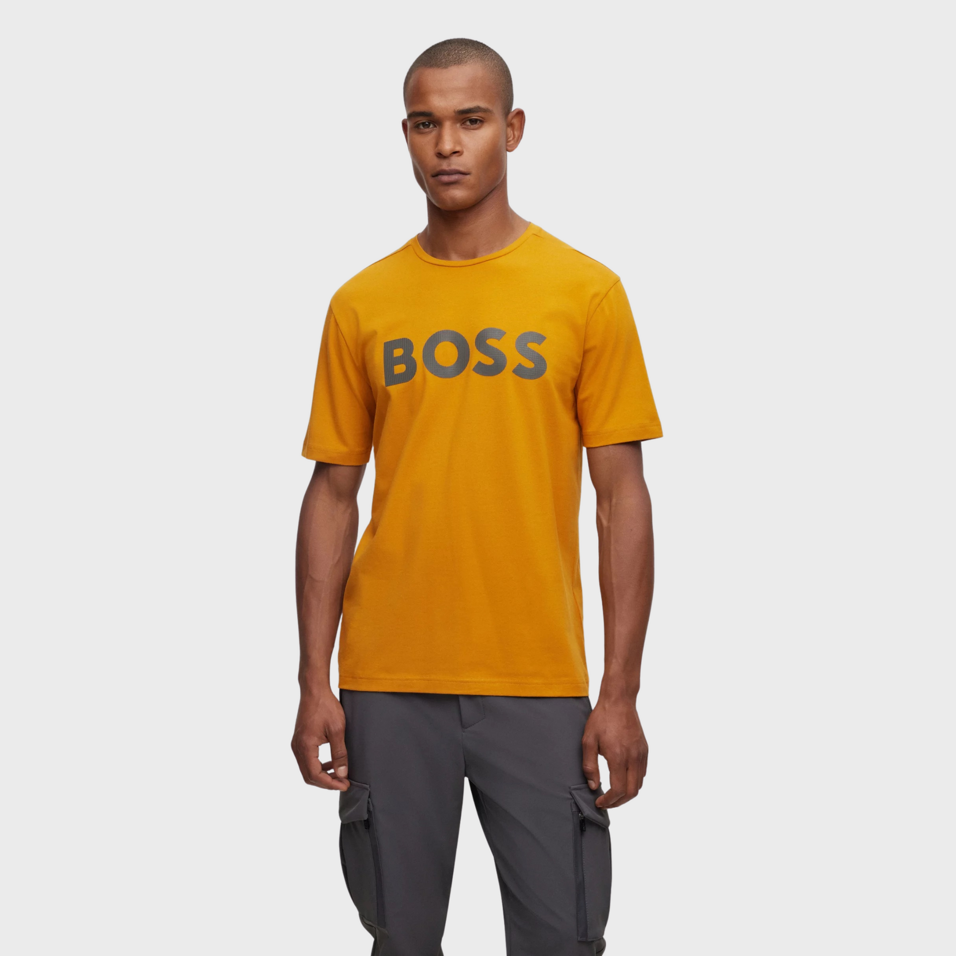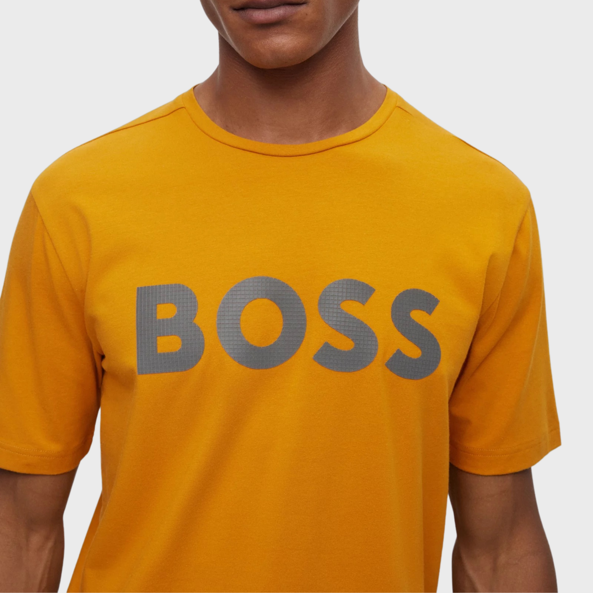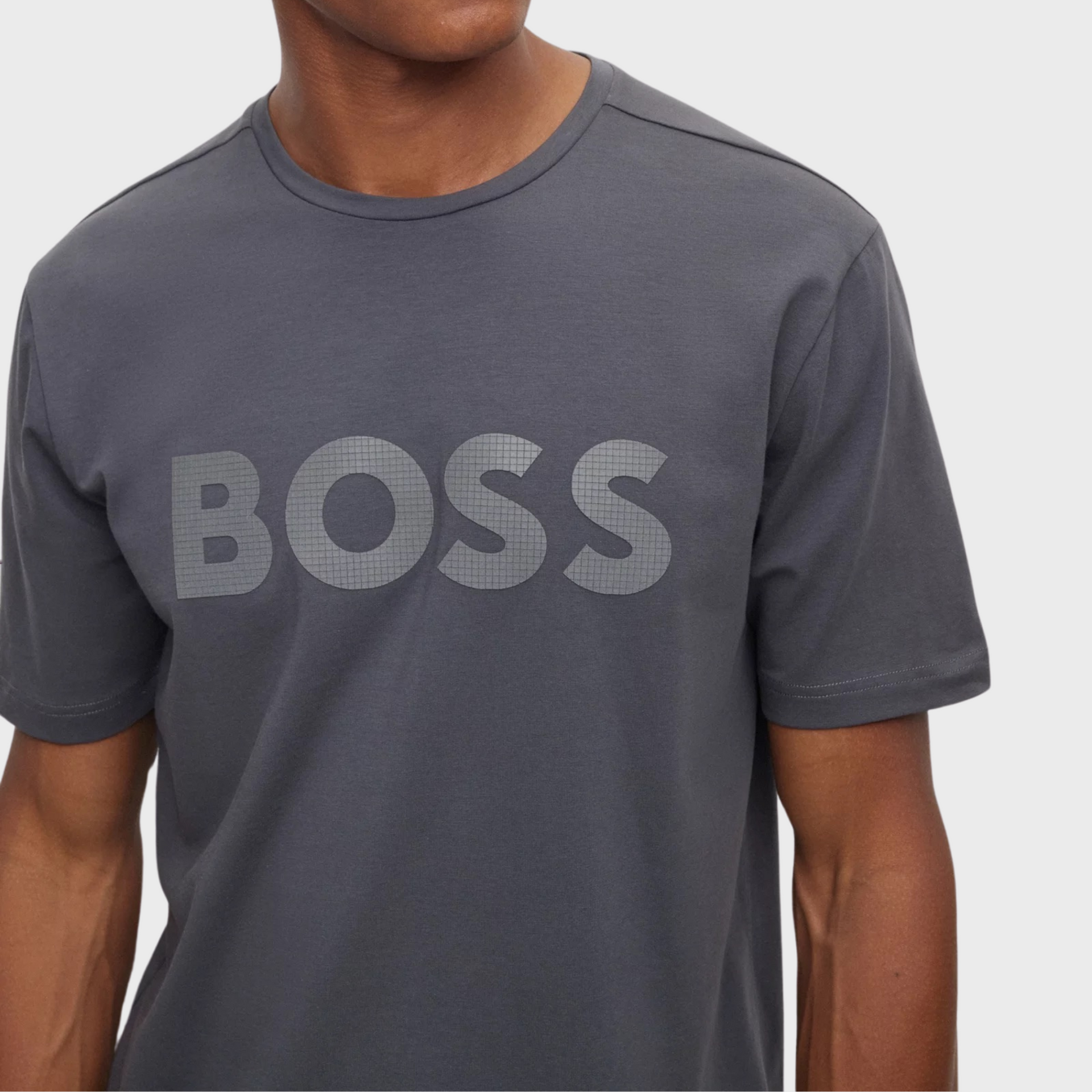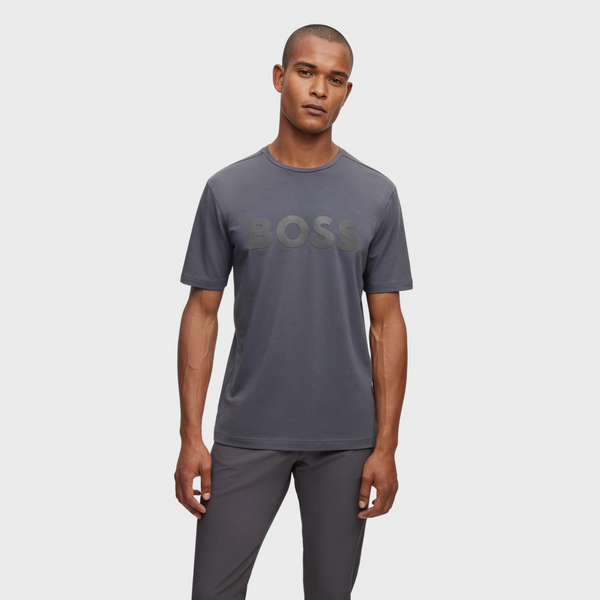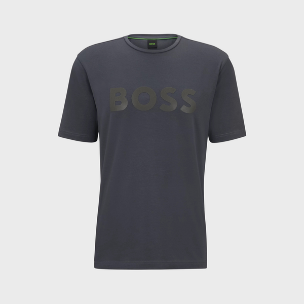 A short-sleeved T-shirt cut to a regular fit in stretch cotton with decorative reflective branding by BOSS Menswear.