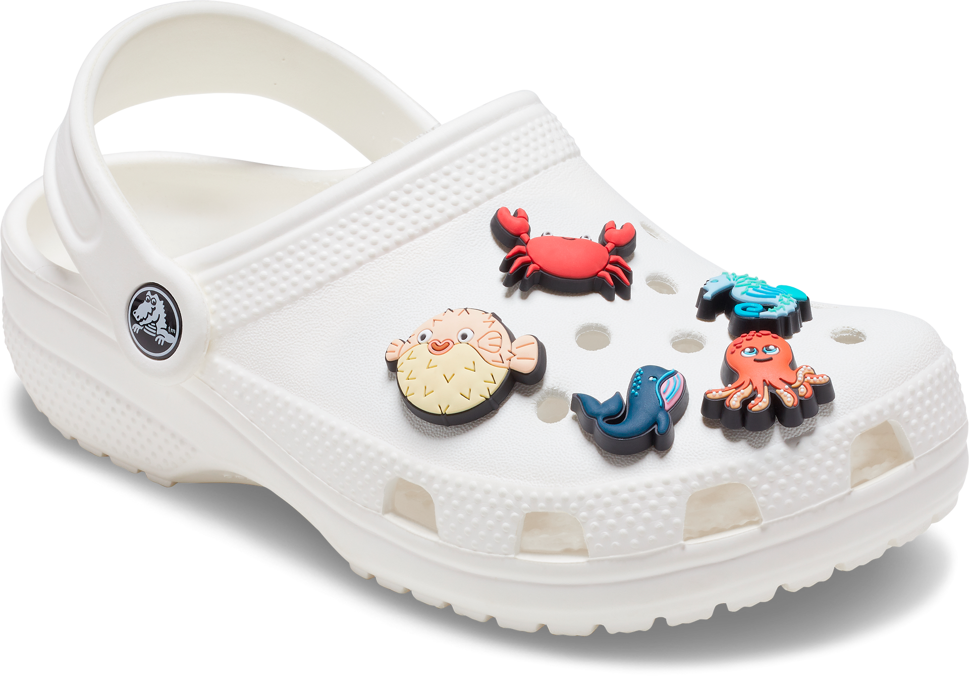Pop some personality into your shoes with these Sea Friends 5 Pack Jibbitz™ charms. They’re the perfect addition to your favorite pairs of clogs, slides, and more.
