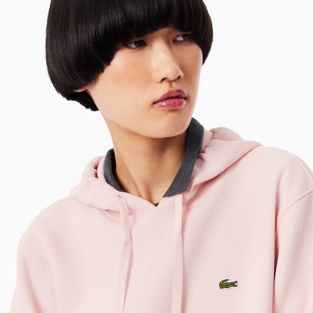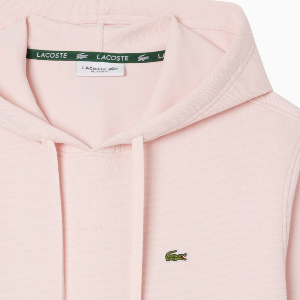 This hoodie from Lacoste, sportswear creators since 1933, is made from our signature soft, comfortable double face piqué fabric. A lesson in classic Lacoste styling, with dropped shoulders, a drawstring, a kangaroo pocket, ribbed edging and a signature embroidered crocodile.