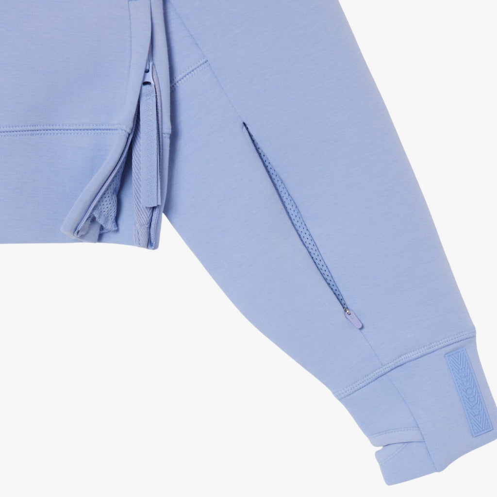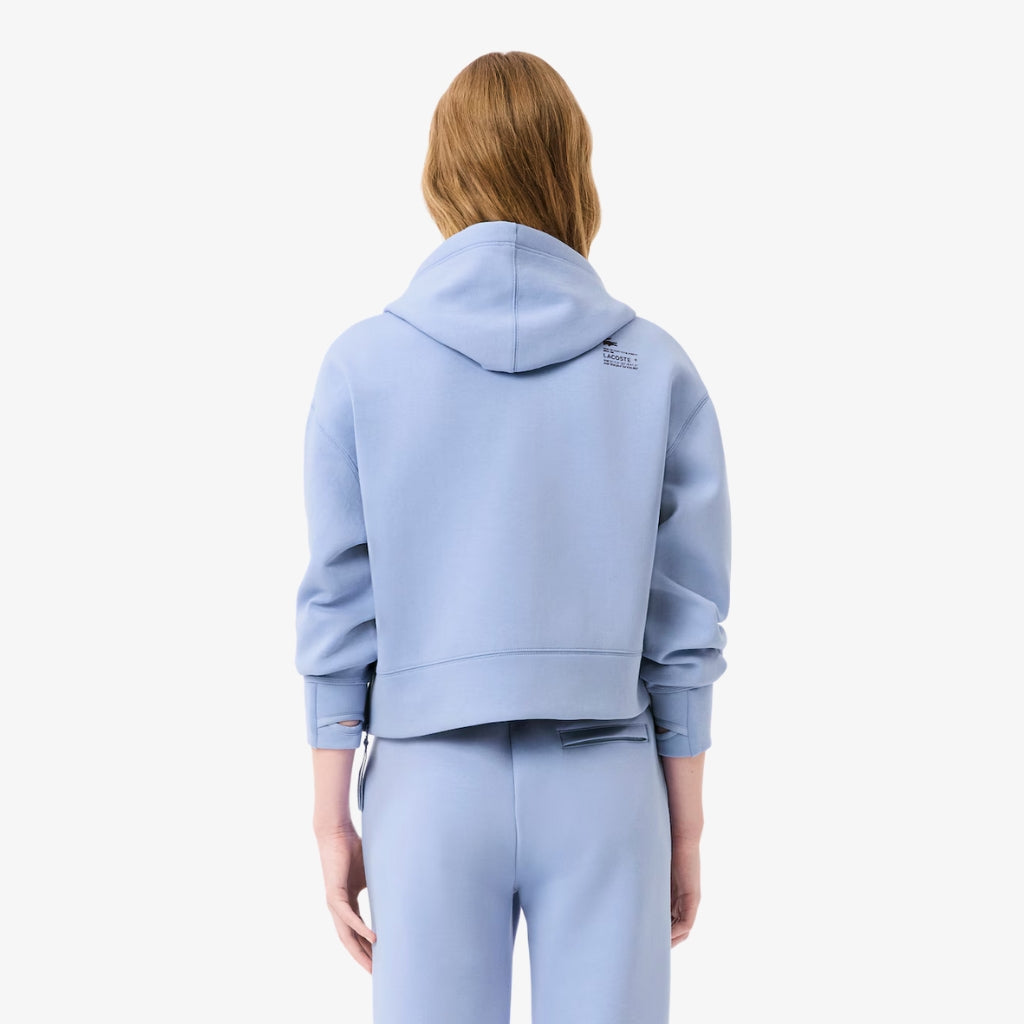 This hoodie, blending fashion and sporting style, is the fruit of 90 years of Lacoste expertise. This comfortable, elegant design features double-face cotton fabric, a cropped cut, and sophisticated touches, such as a zipped side split. An absolute must-have piece, finished with a logo and signature print.