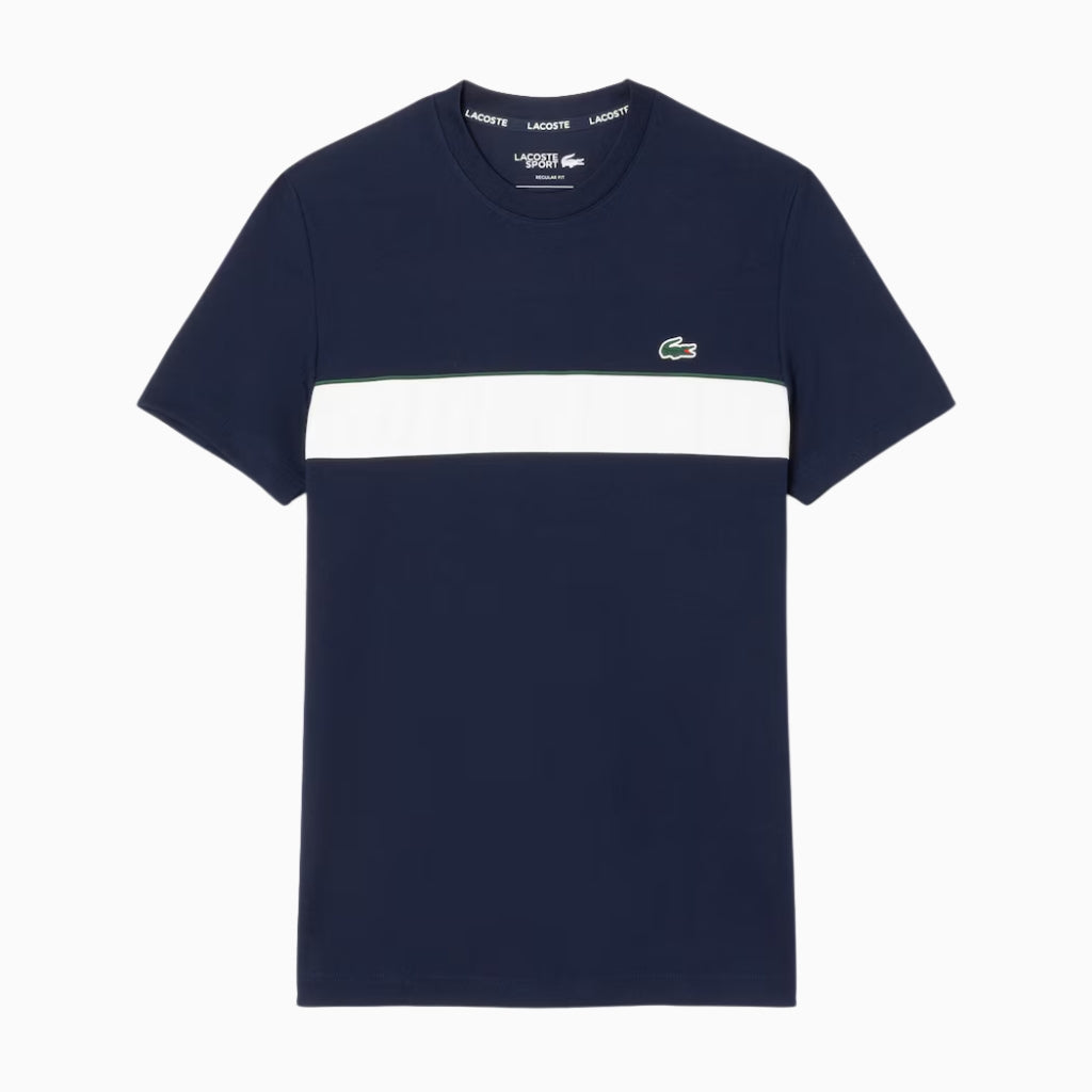 This T-shirt is packed with signature details from Lacoste, sports and style experts since 1933. Made from our iconic piqué fabric with Ultra Dry moisture-wicking technology for comfort, with a signature colour-block design, trim details and a large crocodile print. Bold sporting style.