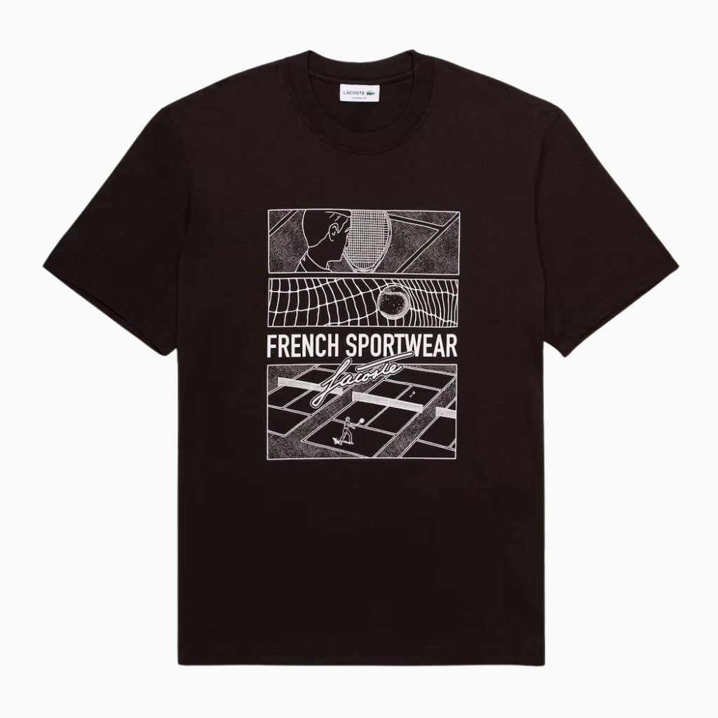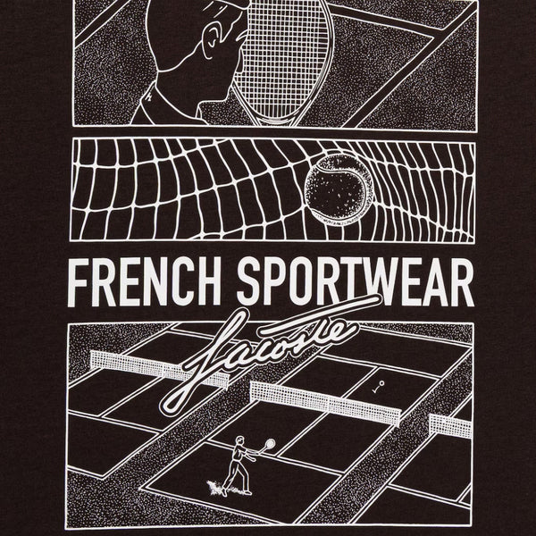 Fashion meets sportswear in this cotton jersey T-shirt, with a comfortable cut and dropped shoulders. A Lacoste wardrobe essential, finished with a bold tennis court print and an intricate embroidered crocodile. Cotton jersey Classic fit,...