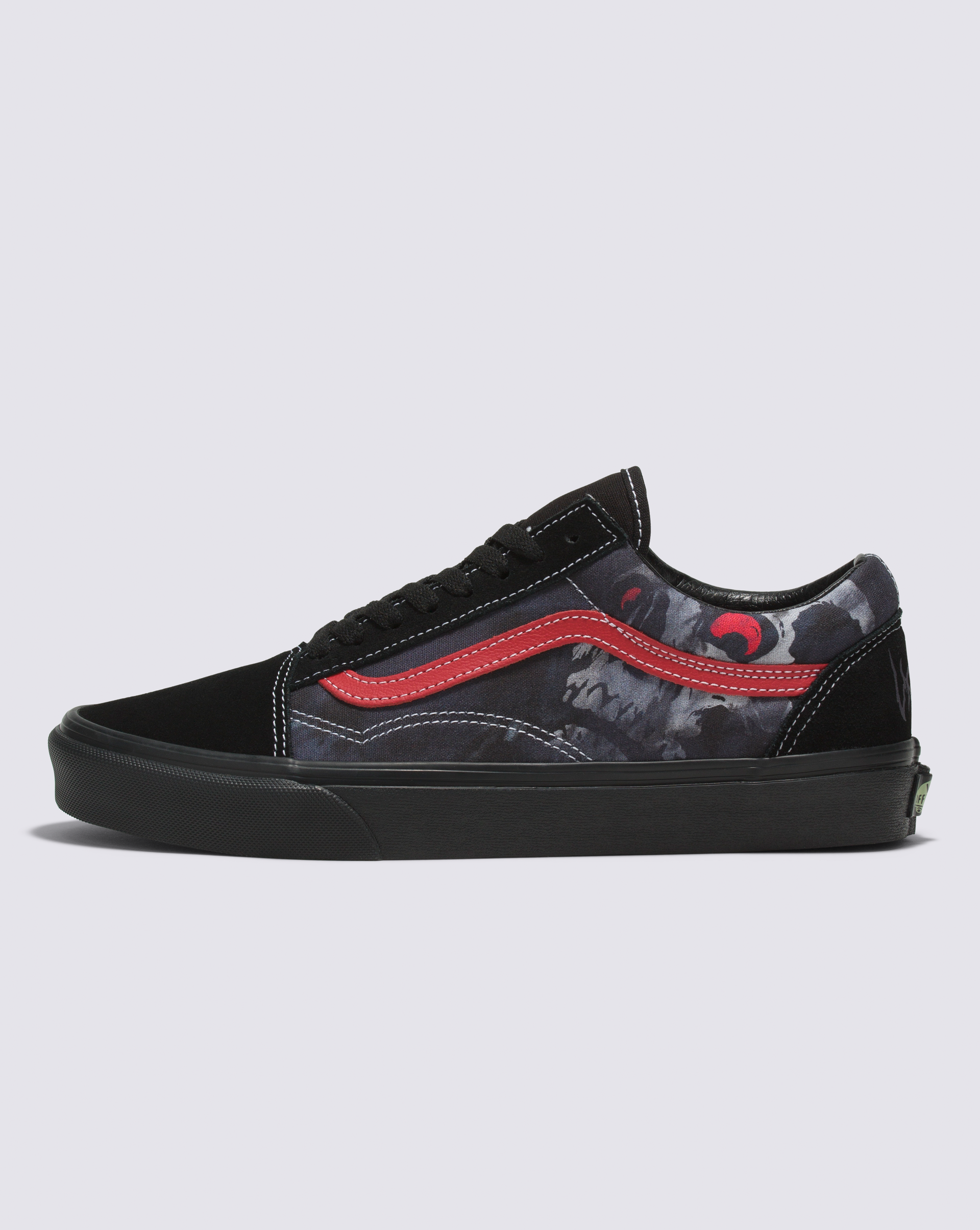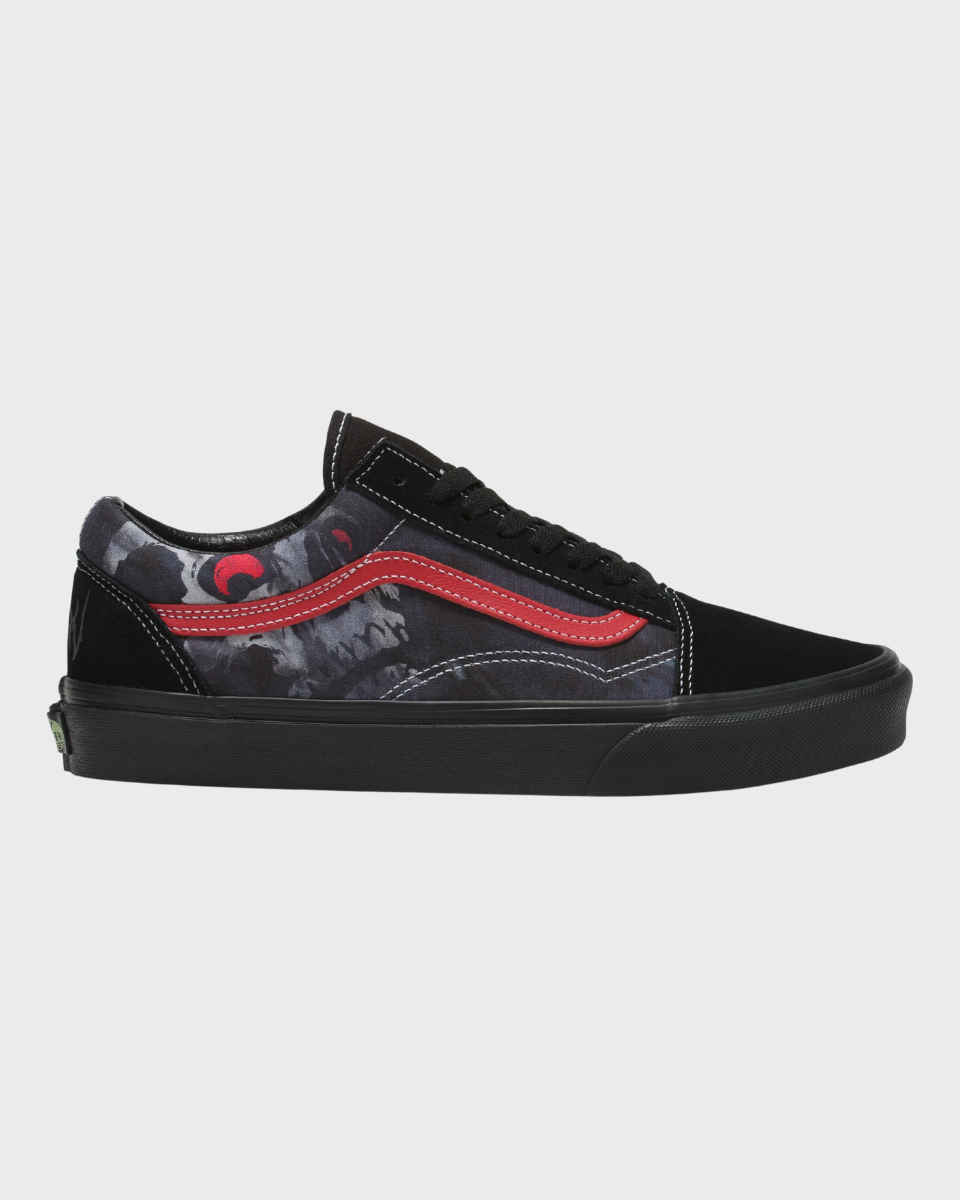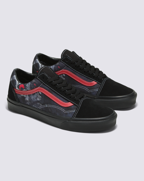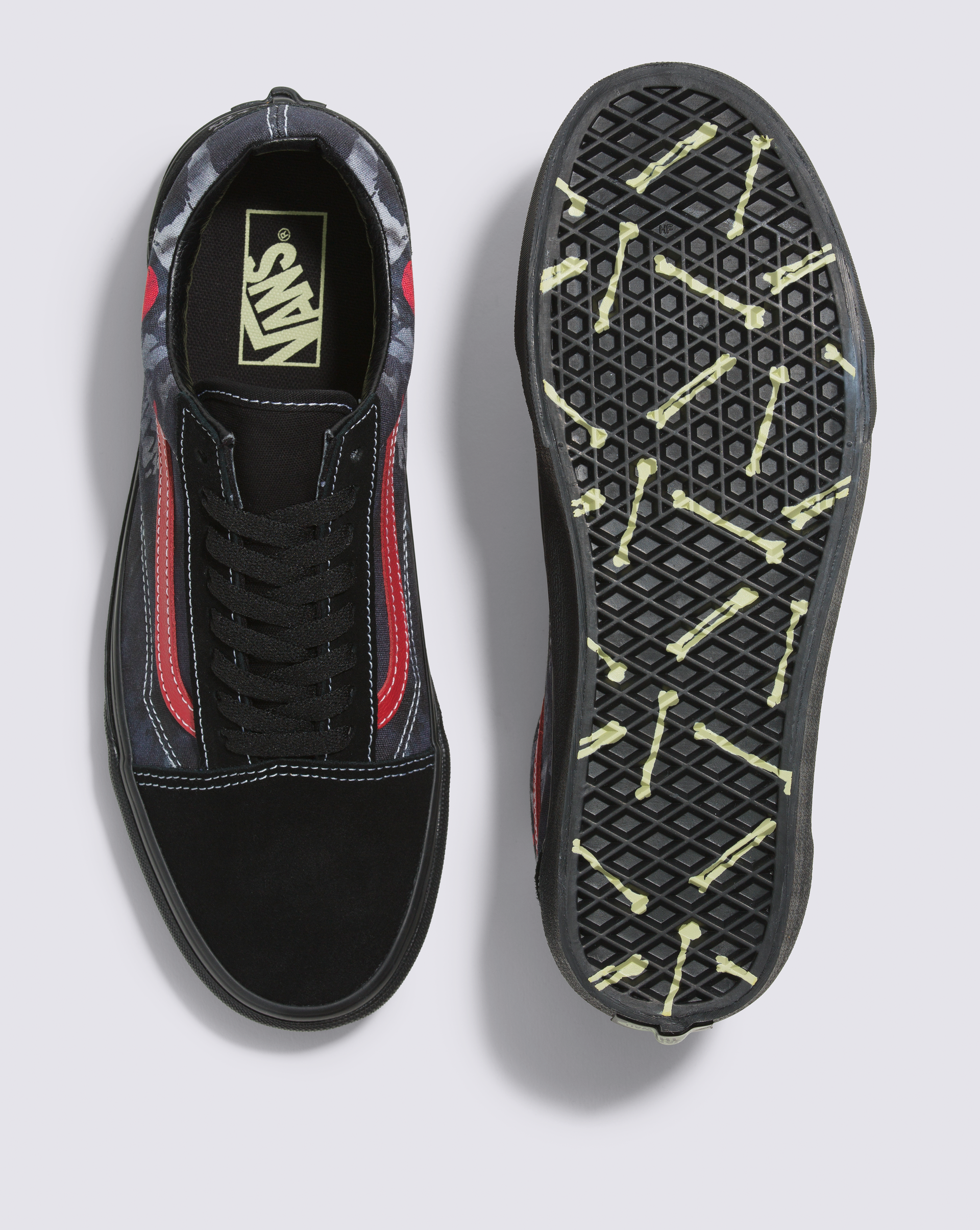 "The Gumsole Old Skool, the Vans classic skate shoe and first to bare the iconic sidestripe, is a low top lace-up featuring sturdy canvas and suede uppers with gum-coloured sidewalls. It also includes re-enforced toe caps to withstand repeated wear, padded collars for support and flexibility, and signature rubber waffle outsoles.
