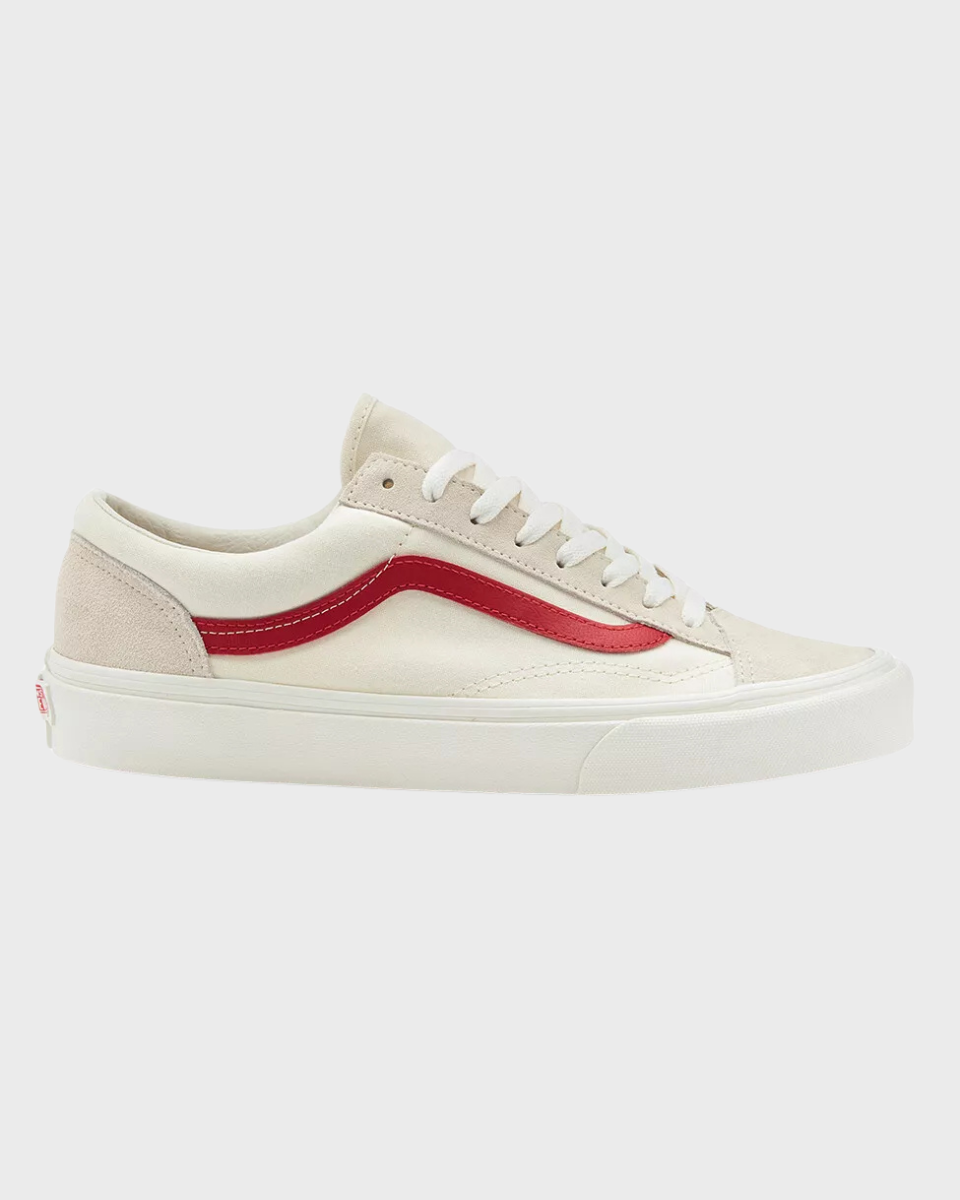 "Tap into Our History with the Style 36 Style 36 was Vans? first Sidestripe shoe brought to life in 1977. Though the Vans Sidestripe has since become the unmistakable?and instantly recognizable?hallmark of the Vans brand, back then it was just a random doodle drawn by founder Paul Van Doren. It even had a different name: the ?jazz stripe.? To honor the style that launched an icon, the Style 36 has been re-released with classic canvas and suede uppers paired with gum-coloured sidewalls for a vintage touch.
